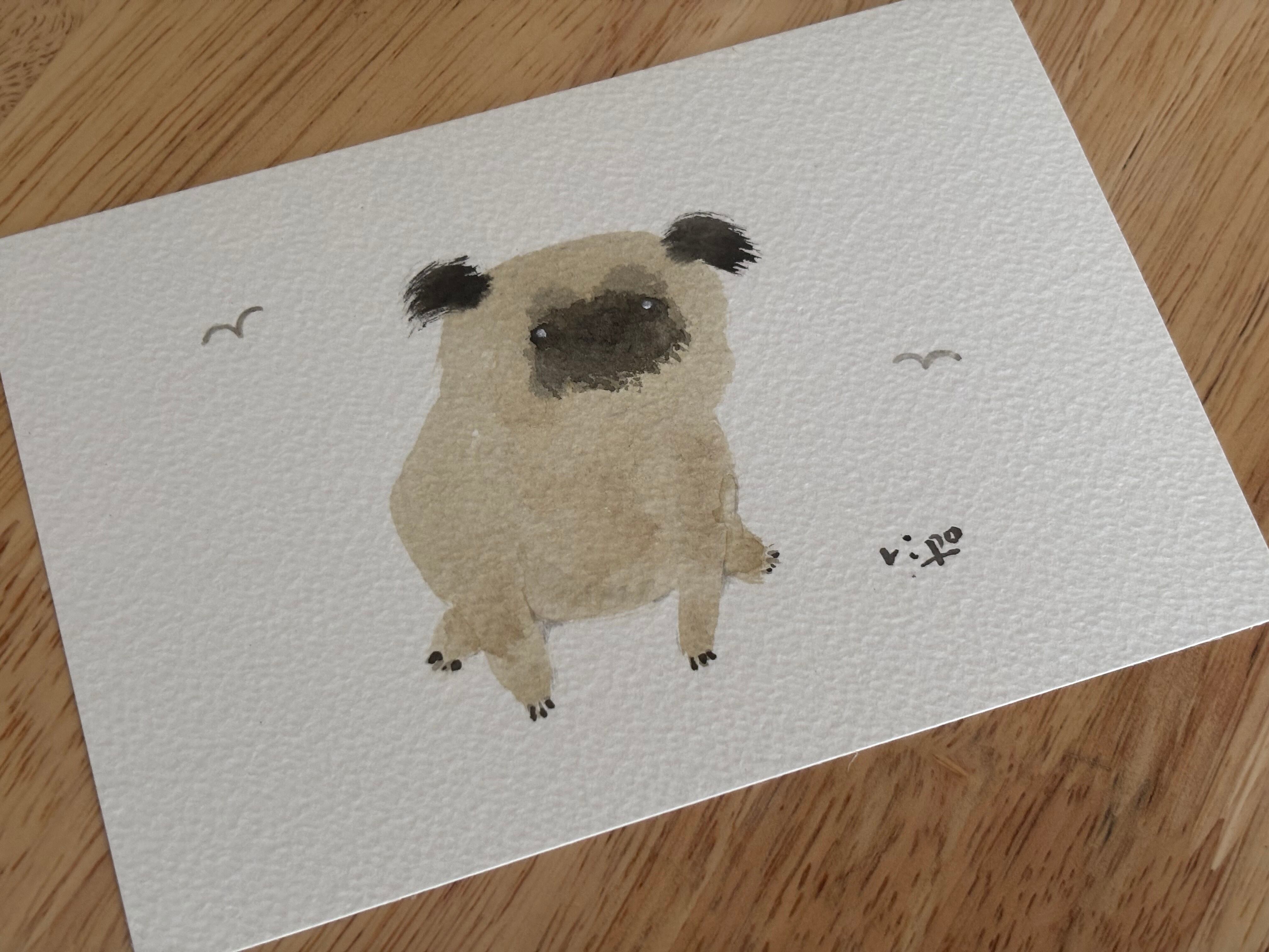 待っているパグ