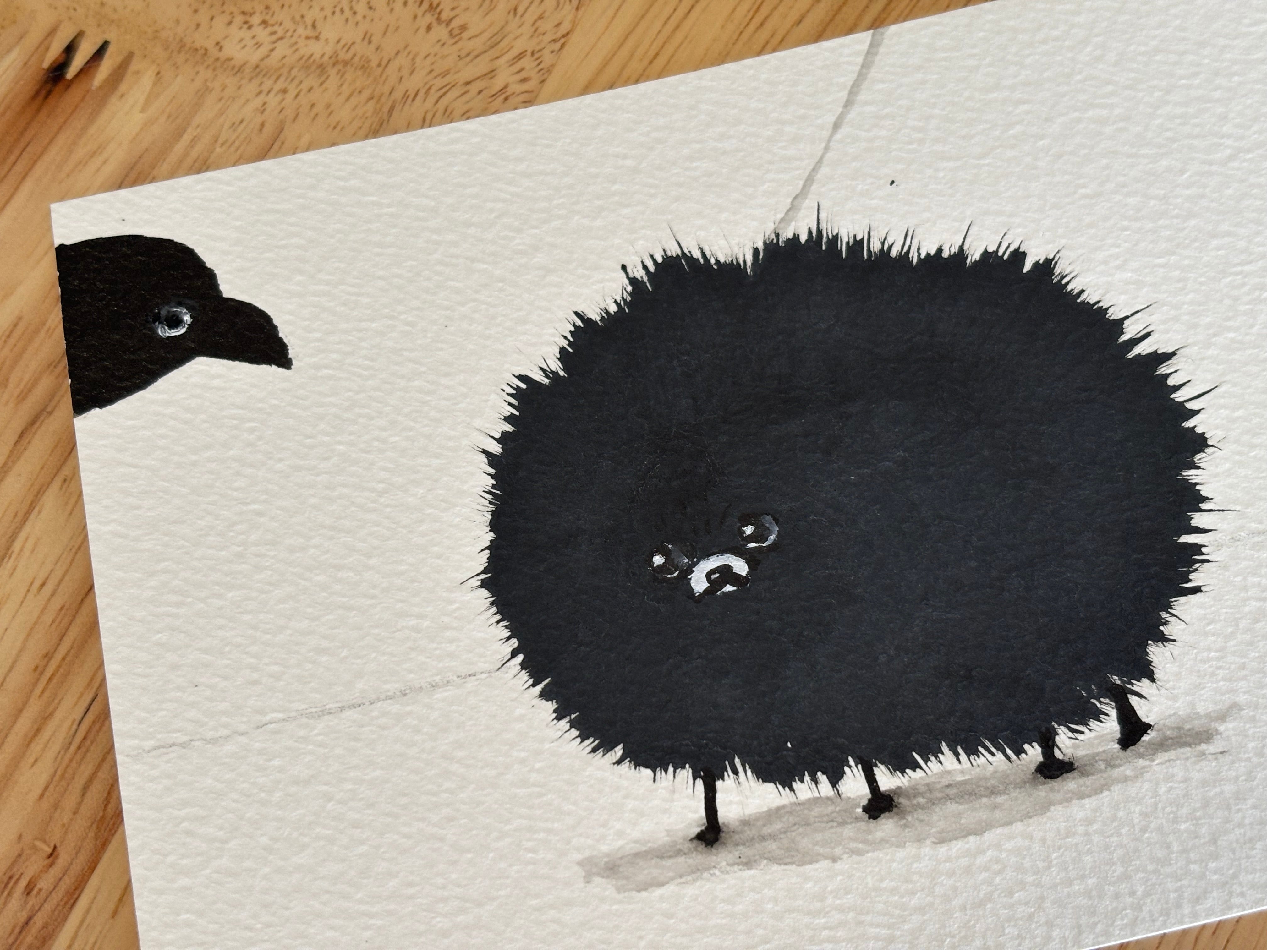 黒いカラスと黒いポメラニアン